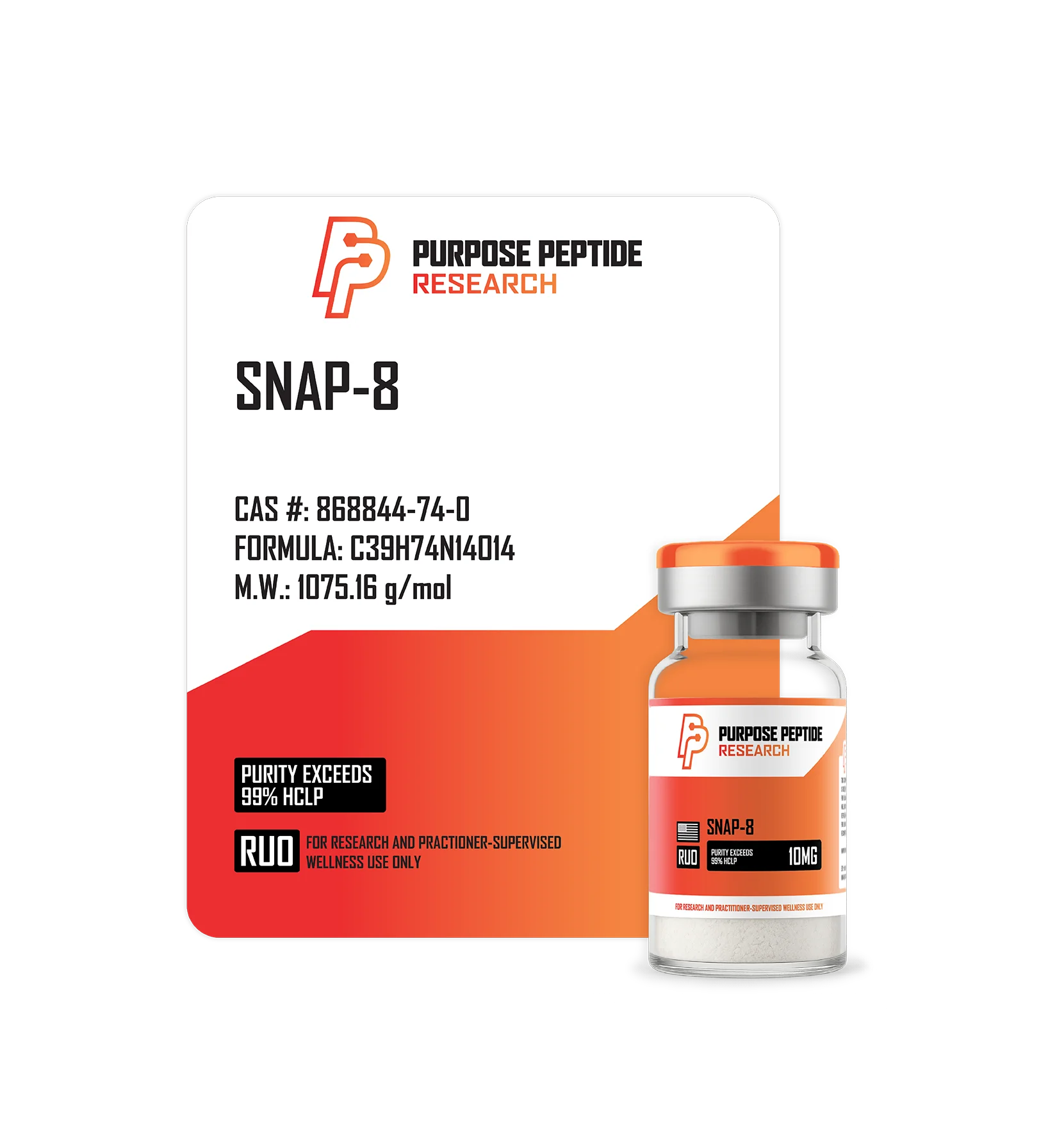 Each batch of SNAP-8 undergoes independent third-party laboratory testing to confirm peptide purity, molecular integrity, and absence of contaminants. Purpose Peptides emphasizes transparency and consistency to support reliable research outcomes.